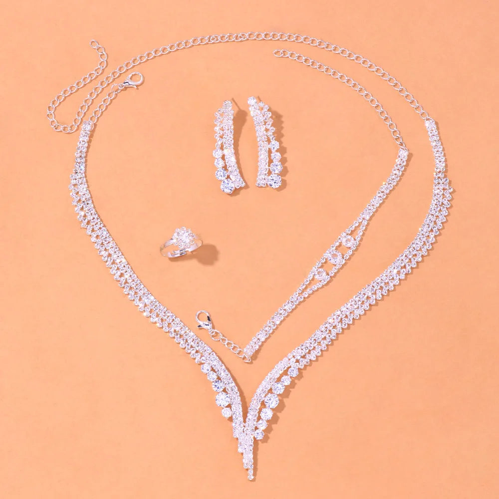 Bridal Necklace Set: Sparkling Crystal & Diamond Jewelry in Silver