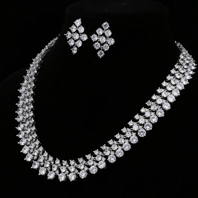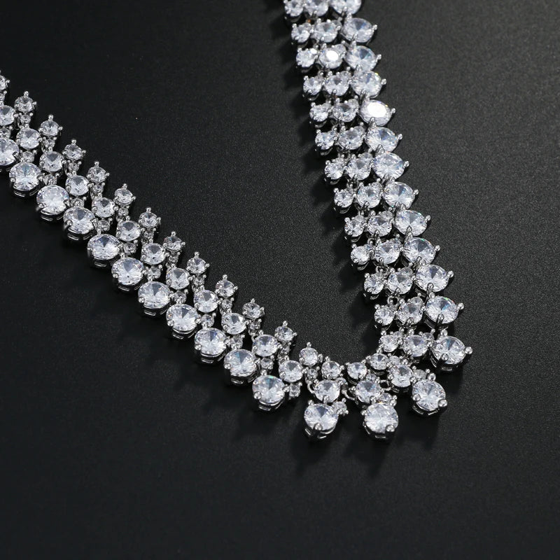 Chunky Bridal Jewelry Sets: Silver Necklace Set with Cubic Zirconia – Wedding Jewelry Sets for Women