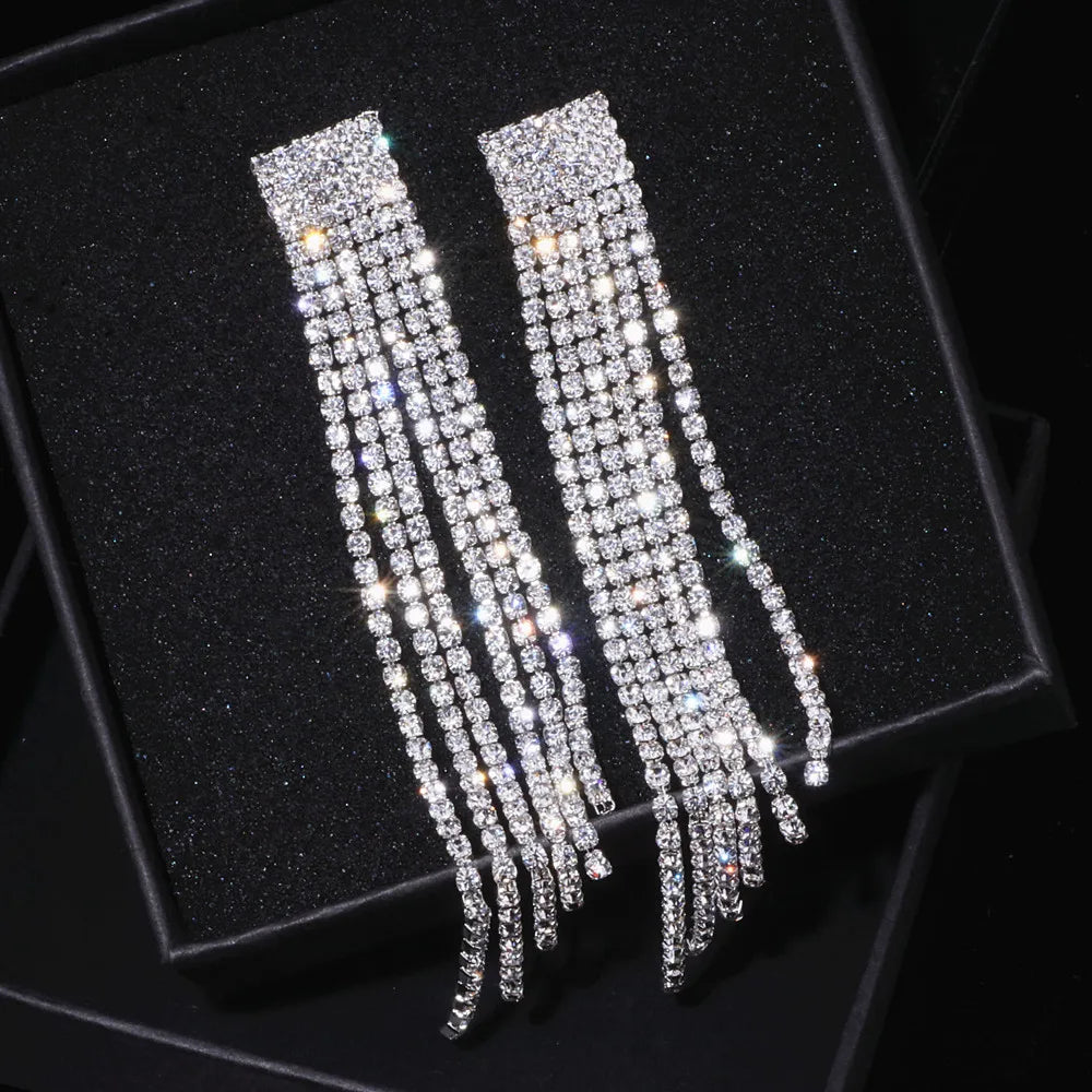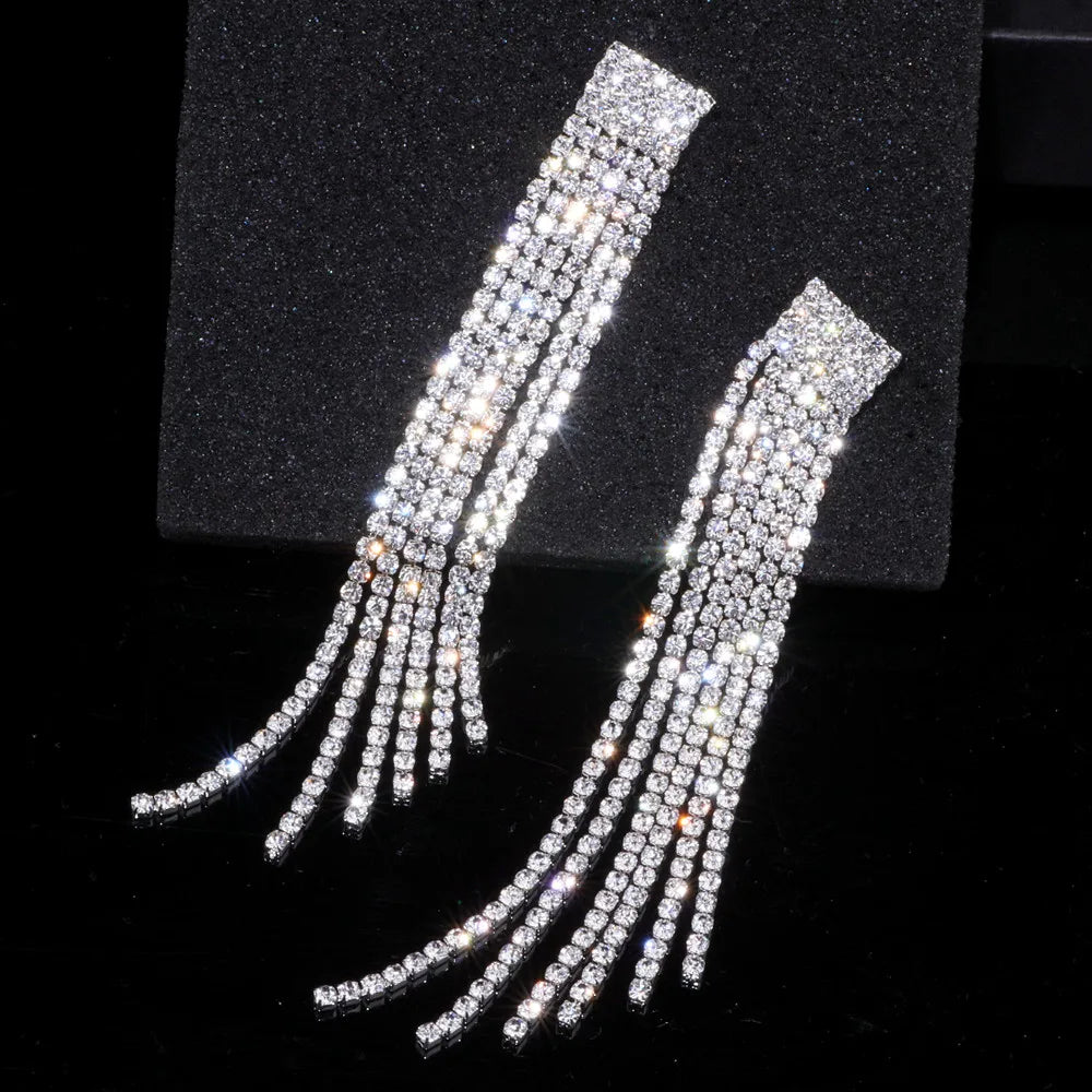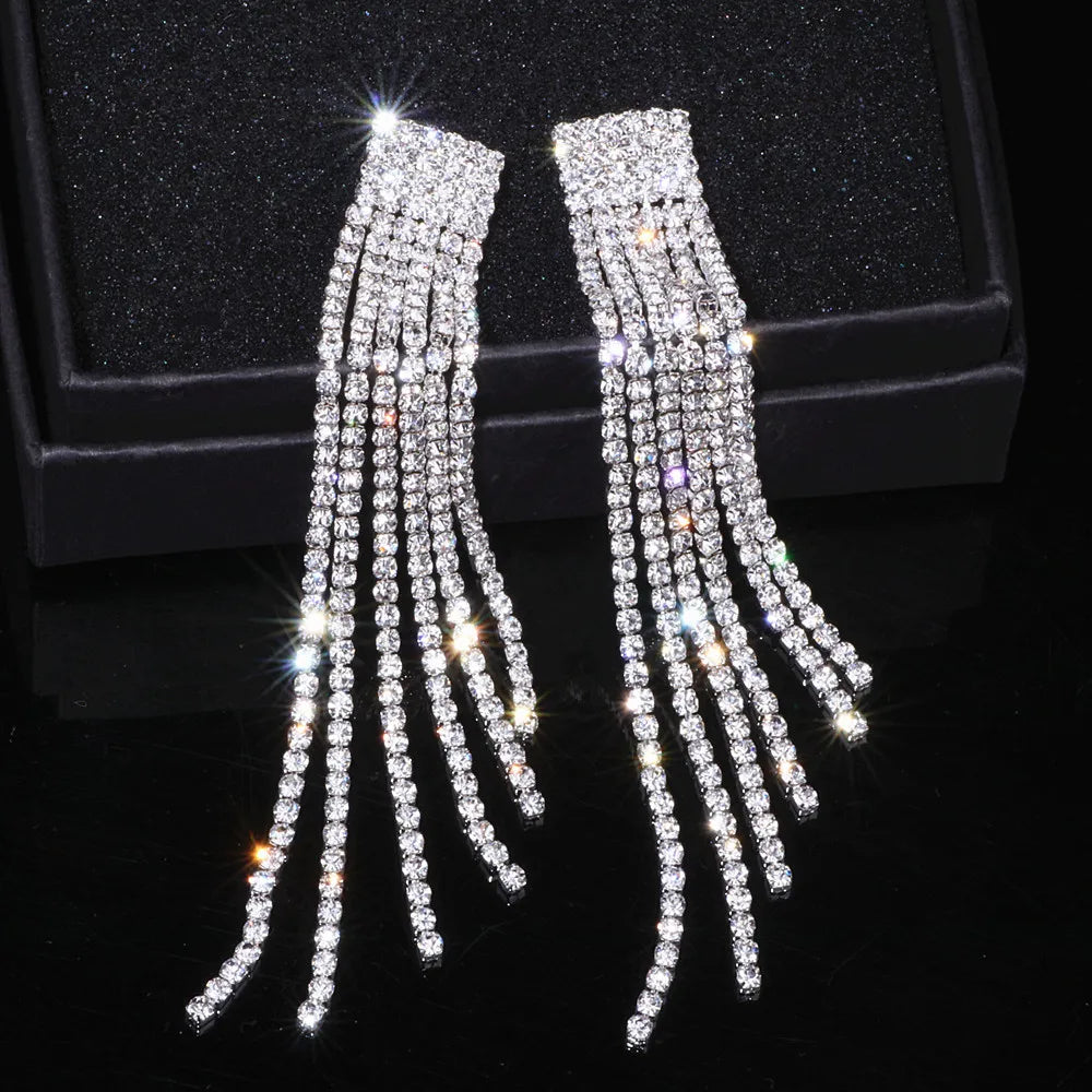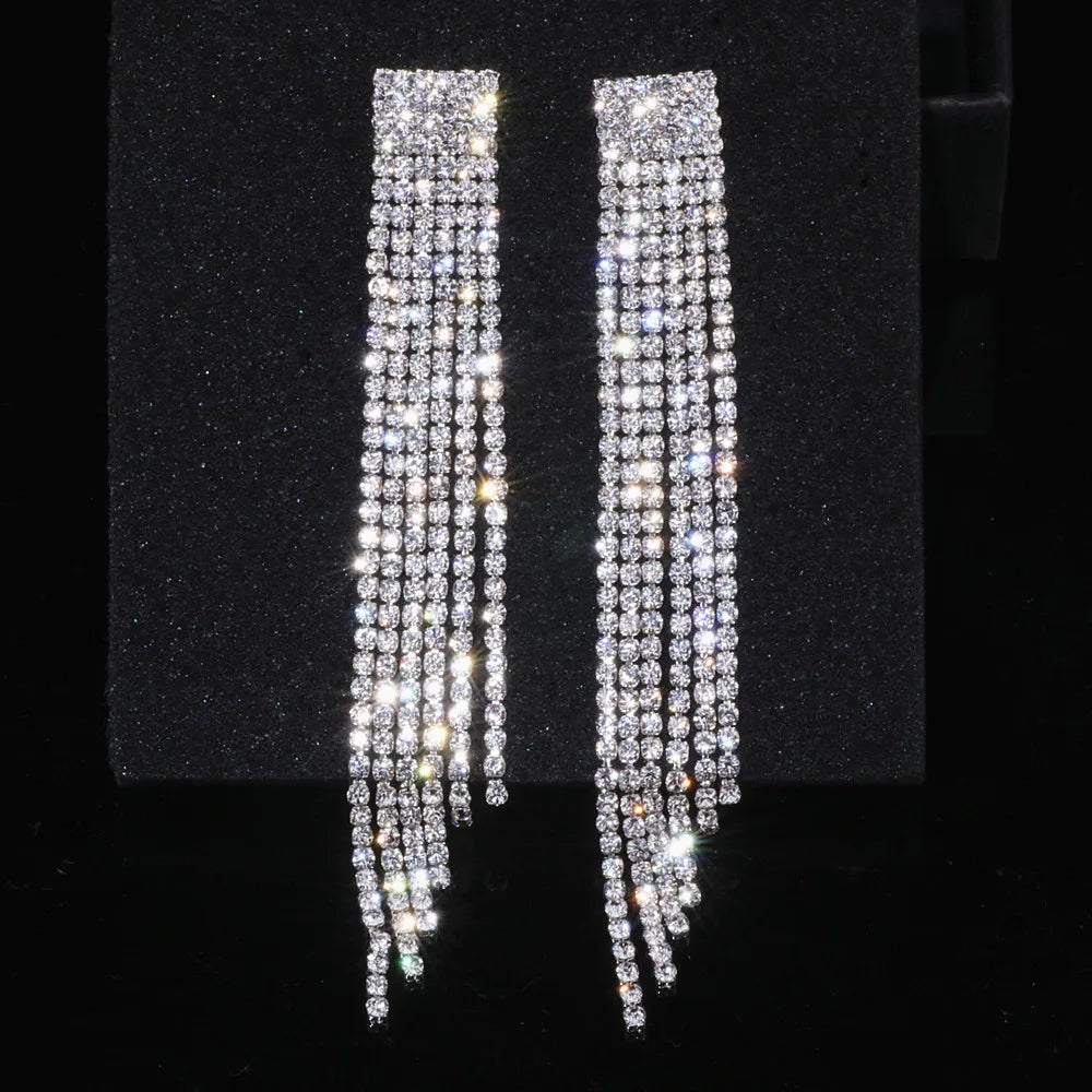 Crystal Wedding Earrings, Big Bridal Earrings,Long Tassel Earrings,Bridal Drop Dangling Earrings,Wedding earrings