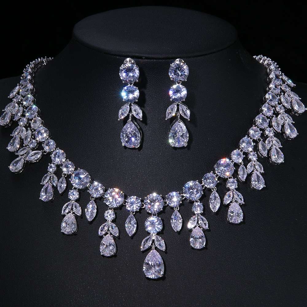 Cubic Zircon Necklace and Earrings, Bridal Necklace and earrings, Jewelry Set, Water Drop Necklace,
