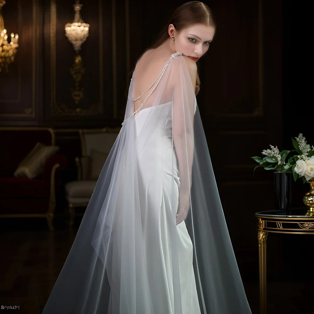 Elegant Bridal Capes & Veils – Pearl-Beaded Wedding Shawls & Cloaks with Long Train
