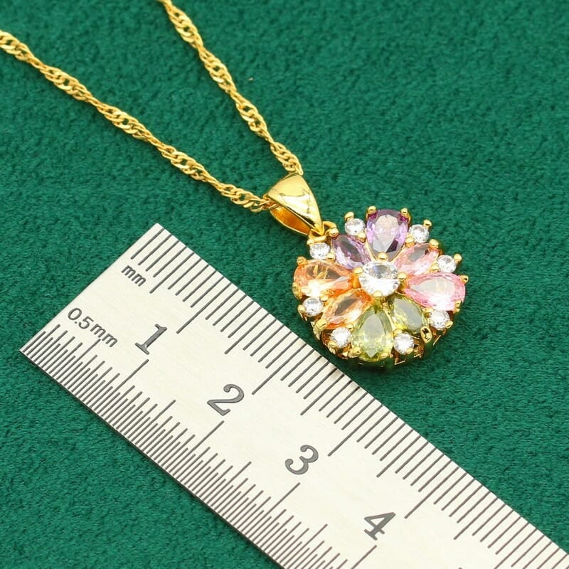 Exquisite 925 Silver Gold Color Jewelry Set with Multicolor Zircon Accents – Perfect for Weddings and Special Occasions