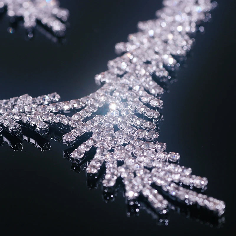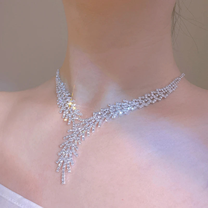 Feather Shape Necklace Earrings Wedding Jewelry set Gifts Wedding necklace Bridal jewelry silver bridal necklace set