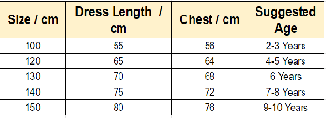 Size 140 Length=75CM,Chest=72CM,Suggest for 7-8 Years