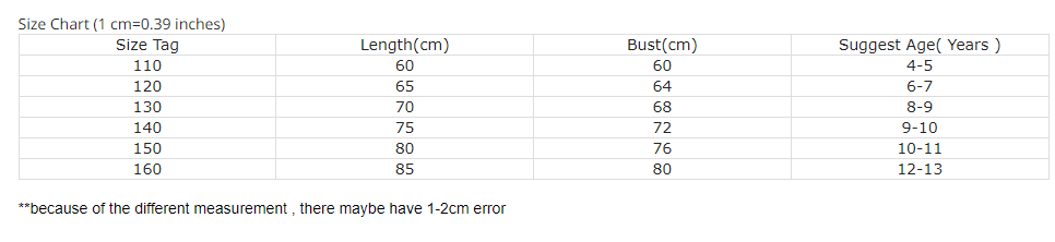Size Chart (1 cm=0.39 inch)