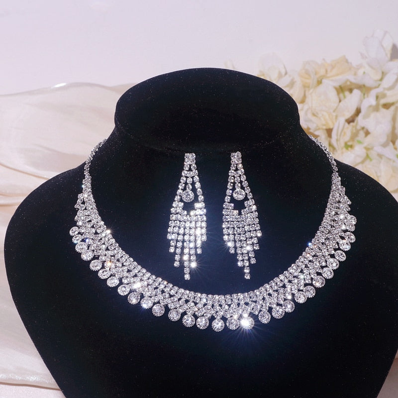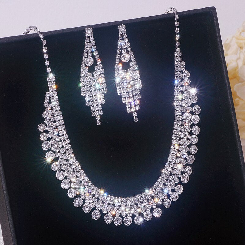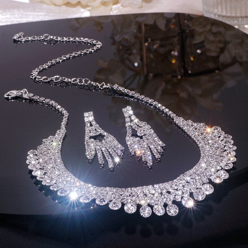 Wedding Jewelry Set Shiny Water Drop Necklace Earrings for Women Bride Necklaces Earrings Sets