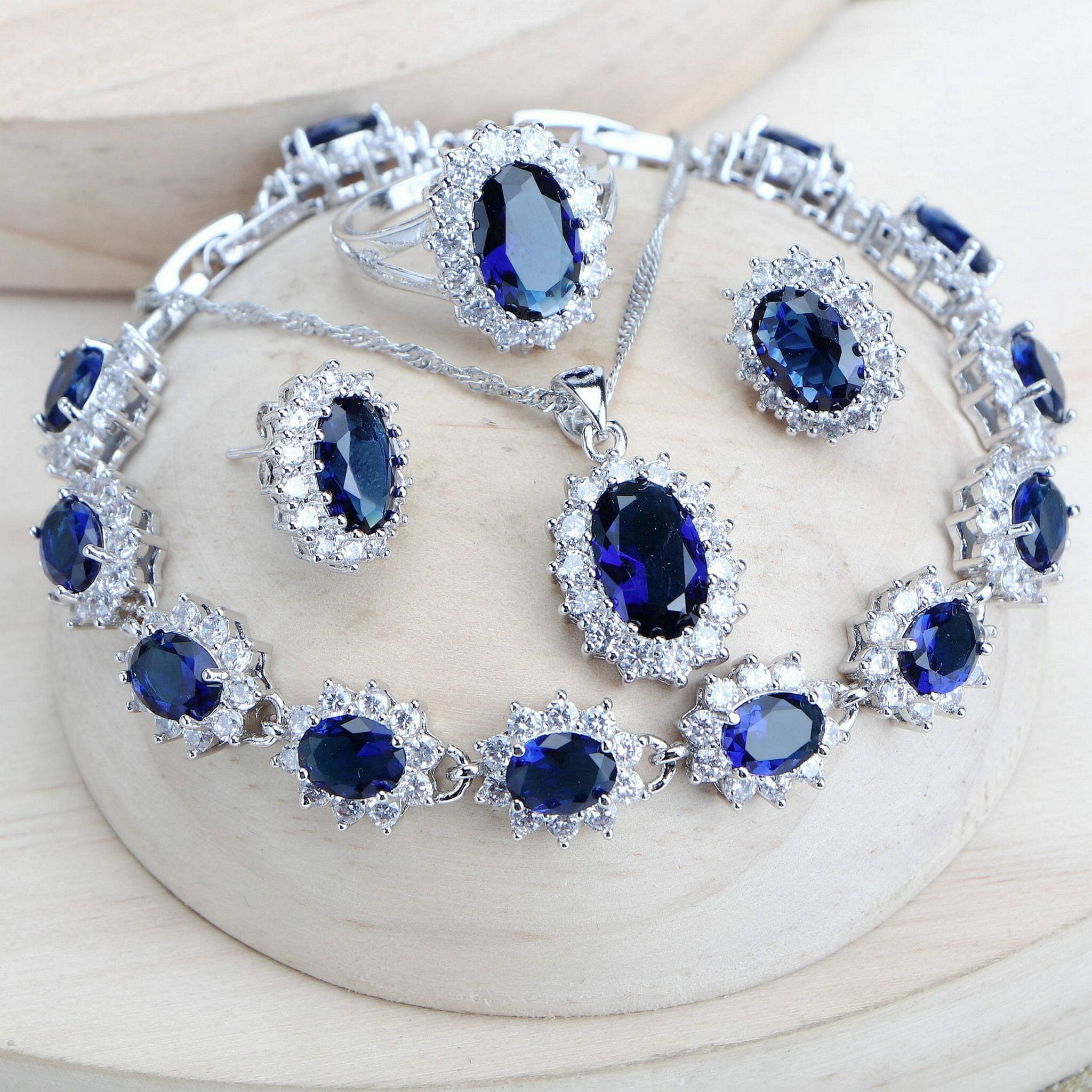 Women’s Bridal Jewelry Sets Blue Zirconia Fine Jewellery Wedding Necklace Earrings Rings Bracelets Pendant Set – Silver 925 Pendant Necklace