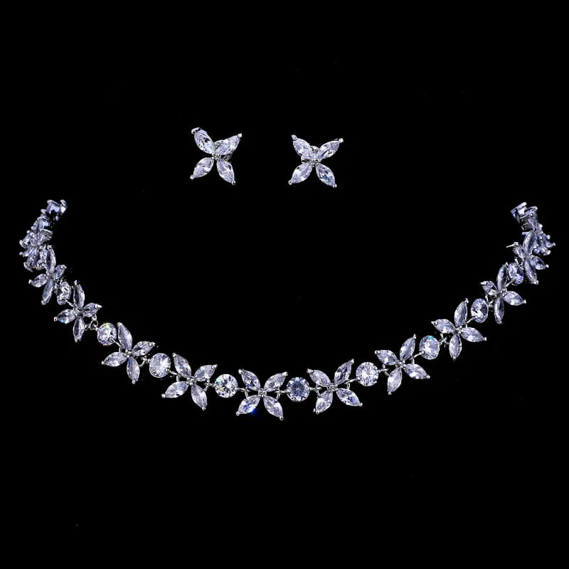 Zircons Necklace and Earrings, Jewelry Set For Wedding Gift, Silver Bridal necklace, Bridal jewelry set, Wedding necklace set